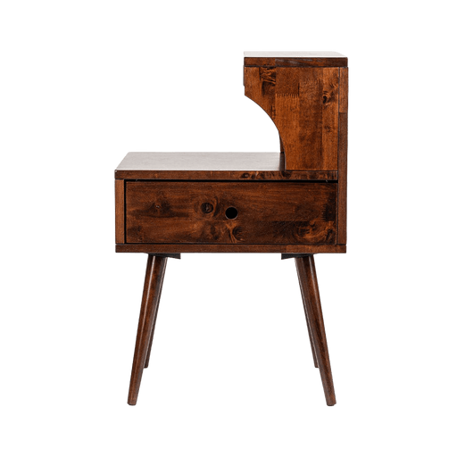 OC HomeDark walnut bedside table. Compact storage solution. Rich finish adds warmth to the room.