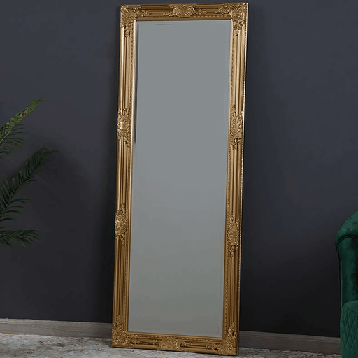 PAN HOMEElevate your space with the exquisite Akira Floor Mirror. Crafted with a sleek gold frame and a rectangular shape, this mirror exudes elegance and ...