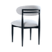 Introducing our sleek dining chair, featuring a slim metal frame that exudes modern elegance. The back of the chair is adorned with a beautifully crafted, sleek wood frame, enhanced by two intersecting lines for a striking visual detail. The gracefully curved back ensures ergonomic support, blending style with comfort. Perfect for contemporary dining spaces, this chair combines minimalist aesthetics with a touch of natural charm, making it an ideal choice for those looking to elevate their dining area.