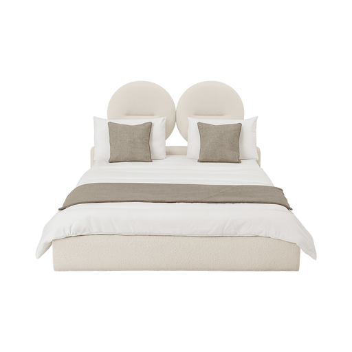 Living PointThe Cora Upholstered Platform Bed is a sculptural expression of modern elegance. Its distinctive double-circle headboard introduces a bold yet sere...