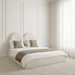 The Cora Upholstered Platform Bed is a sculptural expression of modern elegance. Its distinctive double-circle headboard introduces a bold yet serene silhouette, softened by plush boucle-inspired upholstery that wraps the entire frame. With its neutral palette and tactile finish, Cora brings warmth and sophistication to any interior.