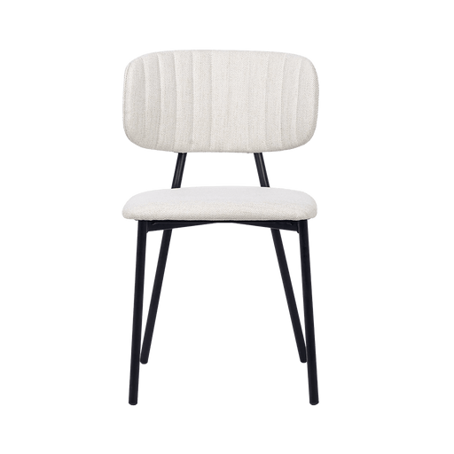 OC HomeElegant ivory dining chair with slim black legs. Provides comfort with a gently curved backrest. Engineered wood frame for durability.