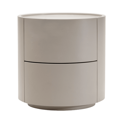 CollideA sophisticated round night table featuring two seamlessly integrated drawers and a gracefully curvy silhouette. Topped with elegant tinted glass, ...