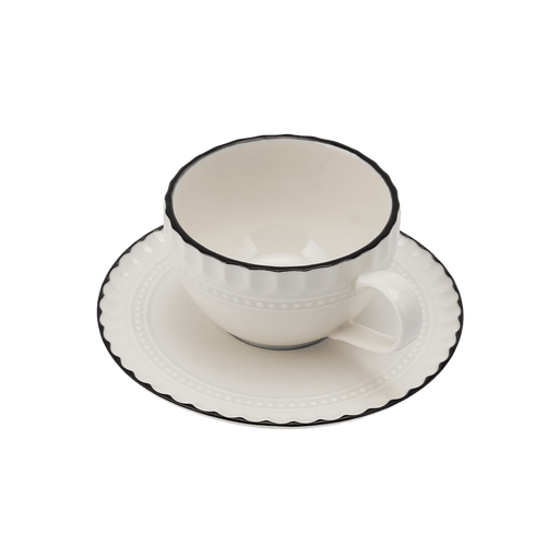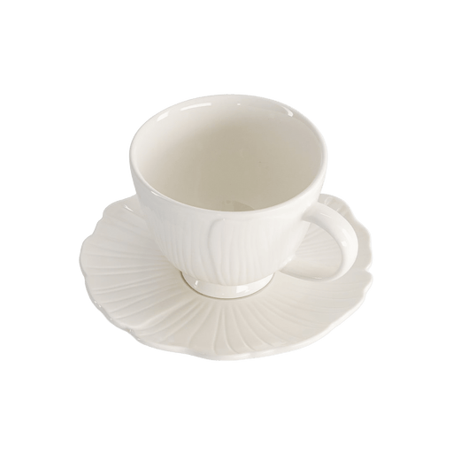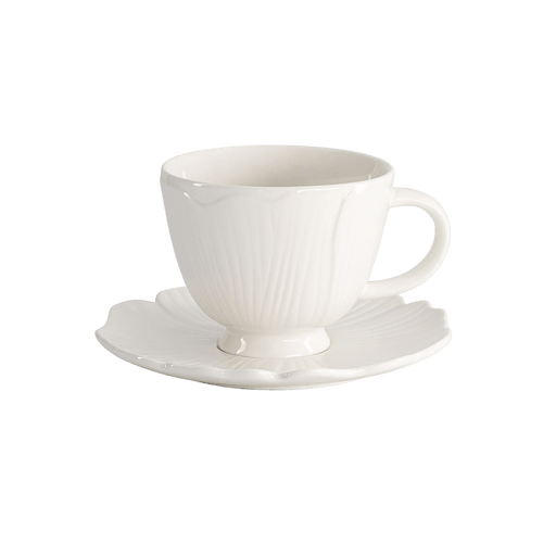 OC HomePorcelain cup with matching saucer. Classic design for coffee or tea. Durable and dishwasher safe.