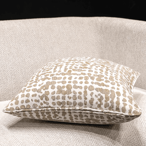 Living PointThis stylish throw pillow showcases a chic, animal-inspired pattern in soft tan and beige tones on a crisp white background. The organic, spotted d...