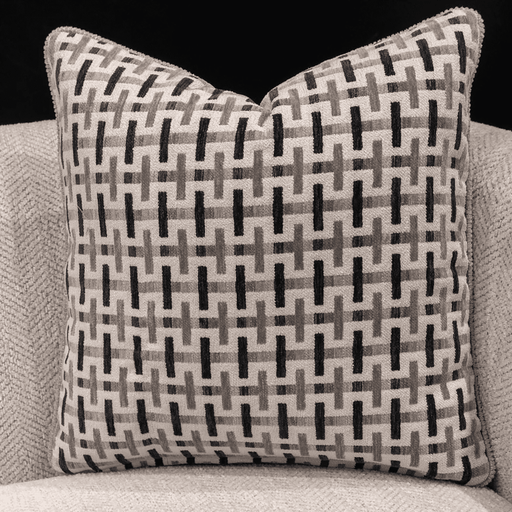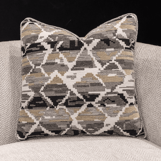 Living PointThis stylish throw pillow showcases a refined geometric pattern in earthy shades of beige, gray, black, and taupe, bringing a modern tribal aesthet...