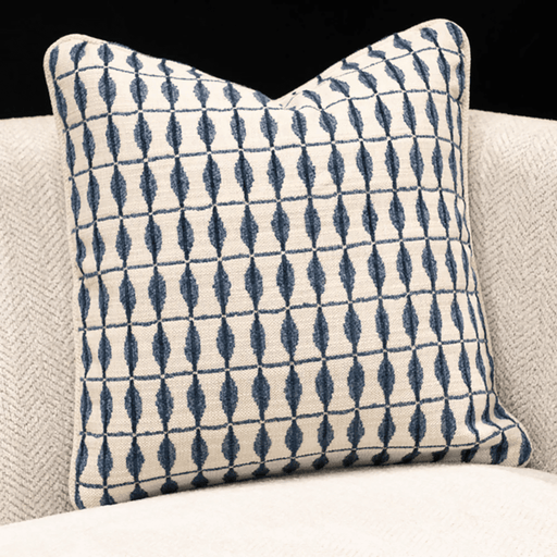 Living PointThis sophisticated throw pillow features a contemporary geometric pattern of navy blue diamond-shaped motifs arranged in a crisp grid on a soft cre...