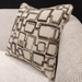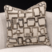 This elegant throw pillow features a modern abstract pattern of overlapping rectangles in warm tones of brown, taupe, and muted blue on a neutral beige background. The design creates a sophisticated, artistic vibe, perfect for adding a touch of contemporary charm to any living space. Its textured woven fabric enhances the visual depth, making it a stylish accent for sofas, armchairs, or beds.