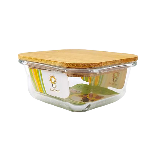Glass Square Food Container W/Bamboo Lid 320Ml -Clear