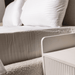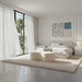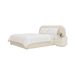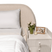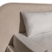 A study in modern serenity, this upholstered bed pairs a gently curved headboard with luxurious textured fabric, creating a tranquil and elegant presence. Its sleek, minimalist silhouette and neutral palette make it effortlessly adaptable to a range of interiors.