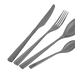 24-piece cutlery set in black finish. Includes forks, spoons, and knives. Durable and elegant.