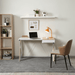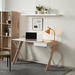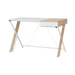 From writing to crafting, here is our KILLOREN WRITING DESK to take care of all your tasks. Combining a compact yet spacious design, it sits perfectly well in any corner. Its panelboard construction is supported by X-cross legs and metal stretchers for optimal support. A pull-out drawer on the side keeps things organized. Mixing a natural appeal and white finish, it looks stylish in your interior.