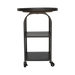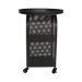 The Michi End Table, in sleek black metal, features four wheels for easy mobility. This versatile and stylish piece offers practical convenience and a modern aesthetic, perfect for any contemporary living space.