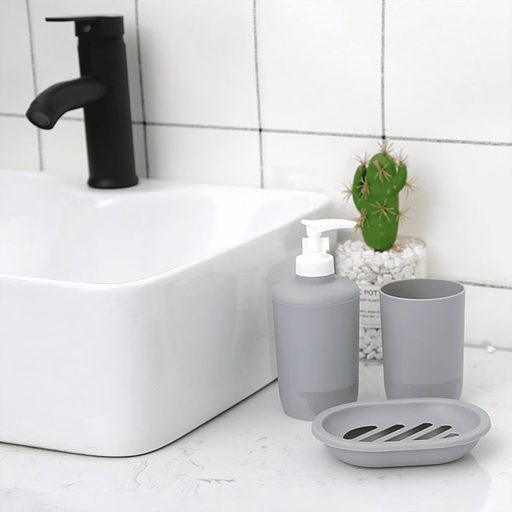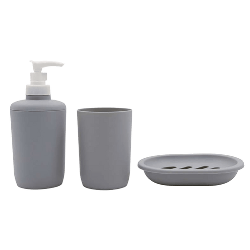 PAN HOMEThe Room Essential 3-piece Bathroom Accessories Set in Grey will enhance your bathroom's decor. This set, which is made of high-quality plastic, co...