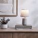 This elegant grey table lamp can enhance the decor of your room. It features a smooth ceramic base with a grey finish and a textured lampshade. This decorative lamp is ideal to use on a sideboard or a table. It's also compatible with E14 bulbs and is suitable for living room and bedroom use.