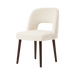 Upholstered in a soft, textured fabric, the chair exudes quiet sophistication, while its solid wood legs in a rich, dark finish provide a grounded elegance and lasting durability. The subtle interplay of curves and contrast makes it an ideal complement to a wide range of dining interiors.