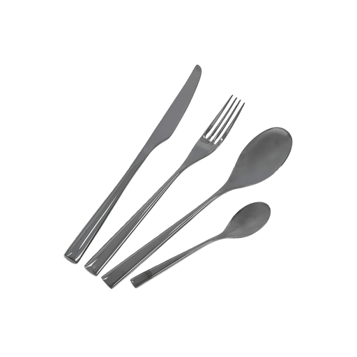 OC Home24-piece cutlery set in black finish. Includes forks, spoons, and knives. Durable and elegant.