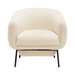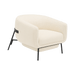 The Lucy Chair embodies modern sophistication, inspired by the gentle curves of folded fabric. Its fluid, cocoon-like form envelops the user, offering both comfort and style. Upholstered in luxurious boucle, the textured fabric adds warmth and depth, while the sturdy metal frame provides a sleek, contemporary contrast.